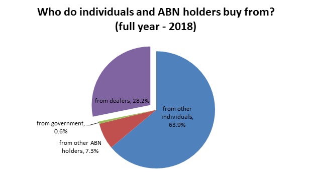 There is interesting news for Licensed Vehicle Dealers. Dealer sales totalled 5,687 for the month. This is down 169 units on January 2018 (-2.9%).Private sales (analysis based on Private and Business selling to Private and Business) are as follows: