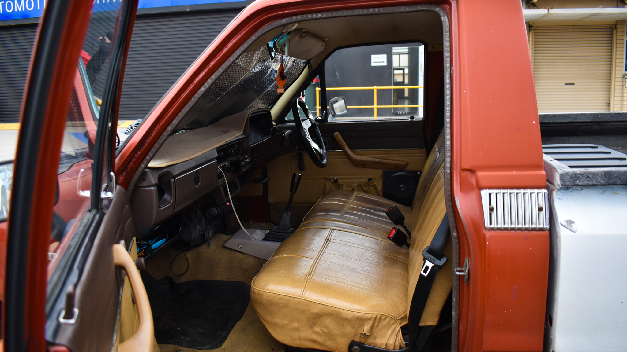 Michele embraces the uniqueness of his truck with its three different colors and attention-grabbing features. The bench seats, zip tied radio, and original steering wheel add to its vintage charm. And although there are still some fixes to be made, Michele takes pride in the immaculate condition of the dash.