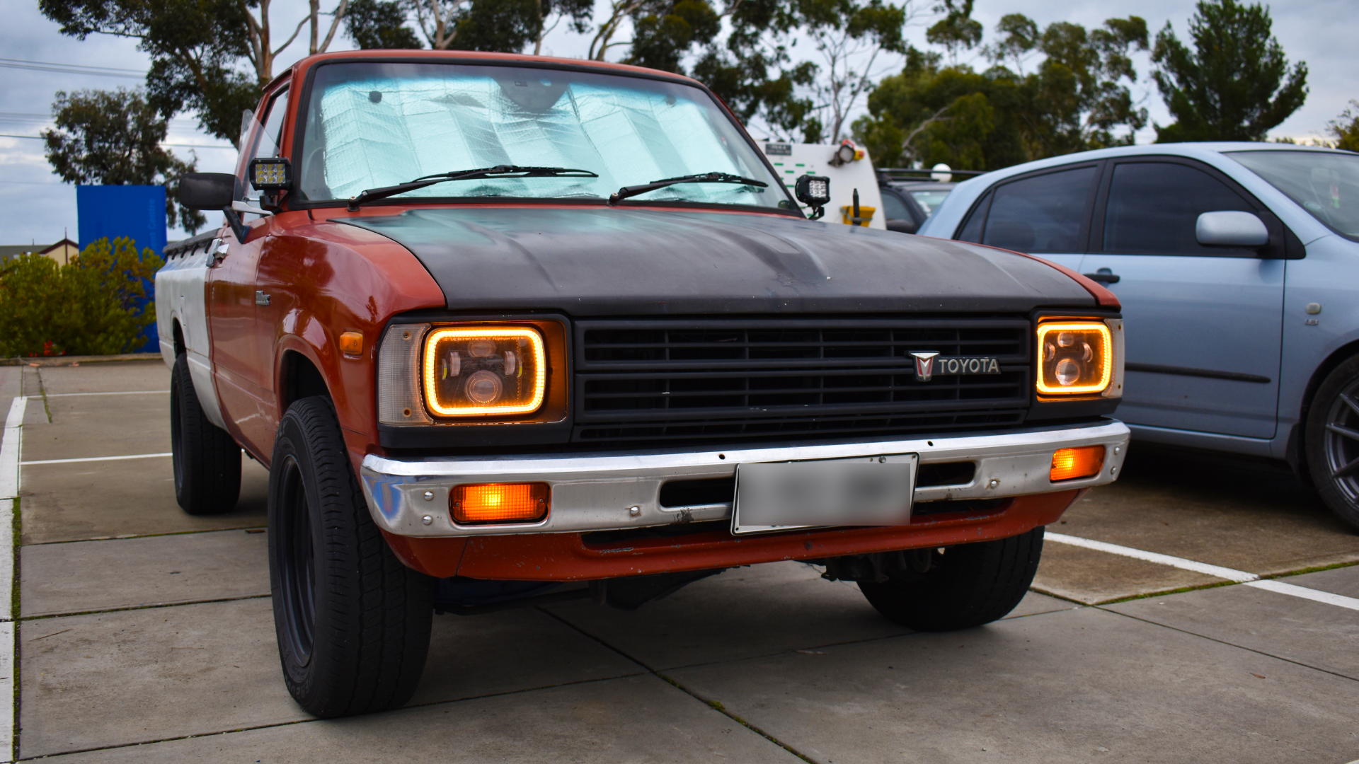 Driven by a tight budget and the challenge of finding parts for this model, Michele sourced another Ute to swap parts off, acquiring a bumper and tub to enhance his Hilux's appearance. He executed a wheels, engine, and gearbox swap, along with suspension upgrades and the addition of fog lights.