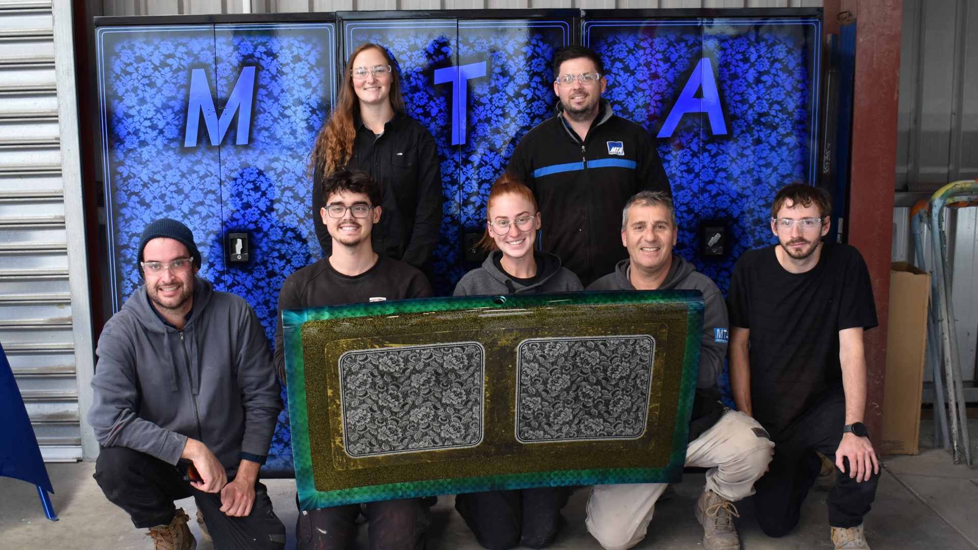 Prior to their graduation, a team of highly skilled MTA automotive refinishing technicians joined forces to create a unique MTA locker. Antony, positioned second from the bottom left in the group, shared insightful details about the process involved in designing and constructing this distinctive locker.