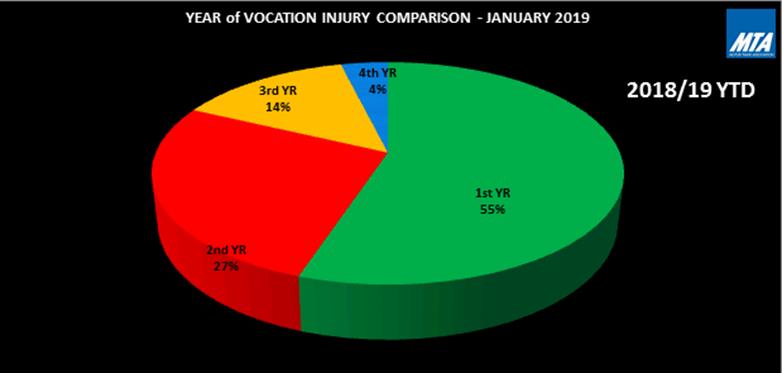 At the MTA, we have identified that over the past 12 months, 82% of workplace injuries are reported by 1st and 2nd Year Apprentices.