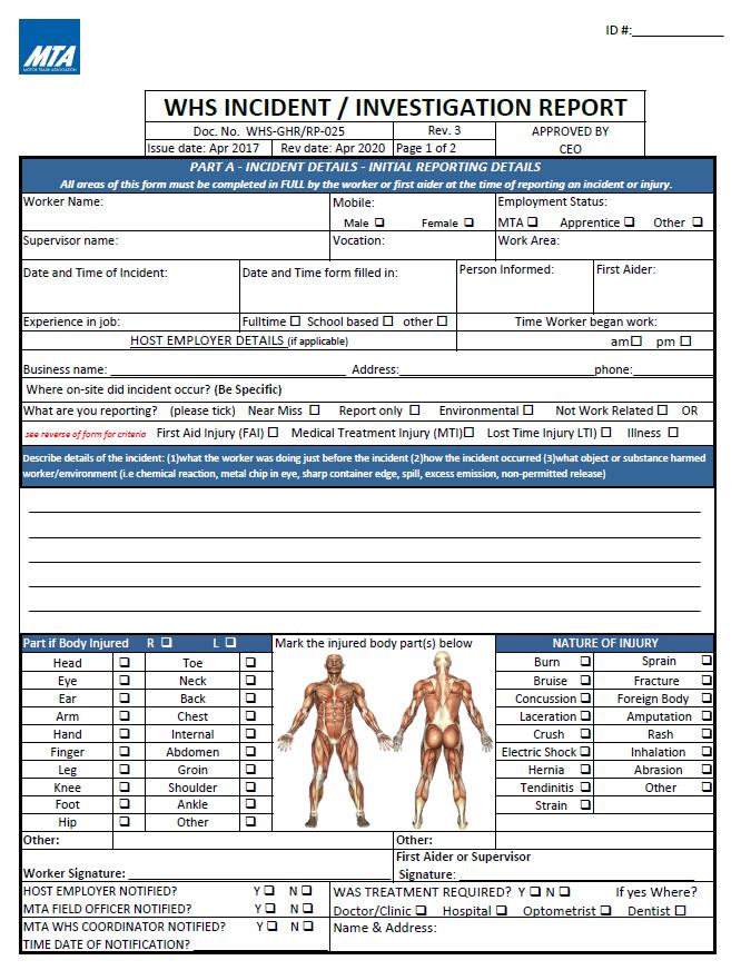 The below image can be used as a guide for creating your own injury report form for your workers.